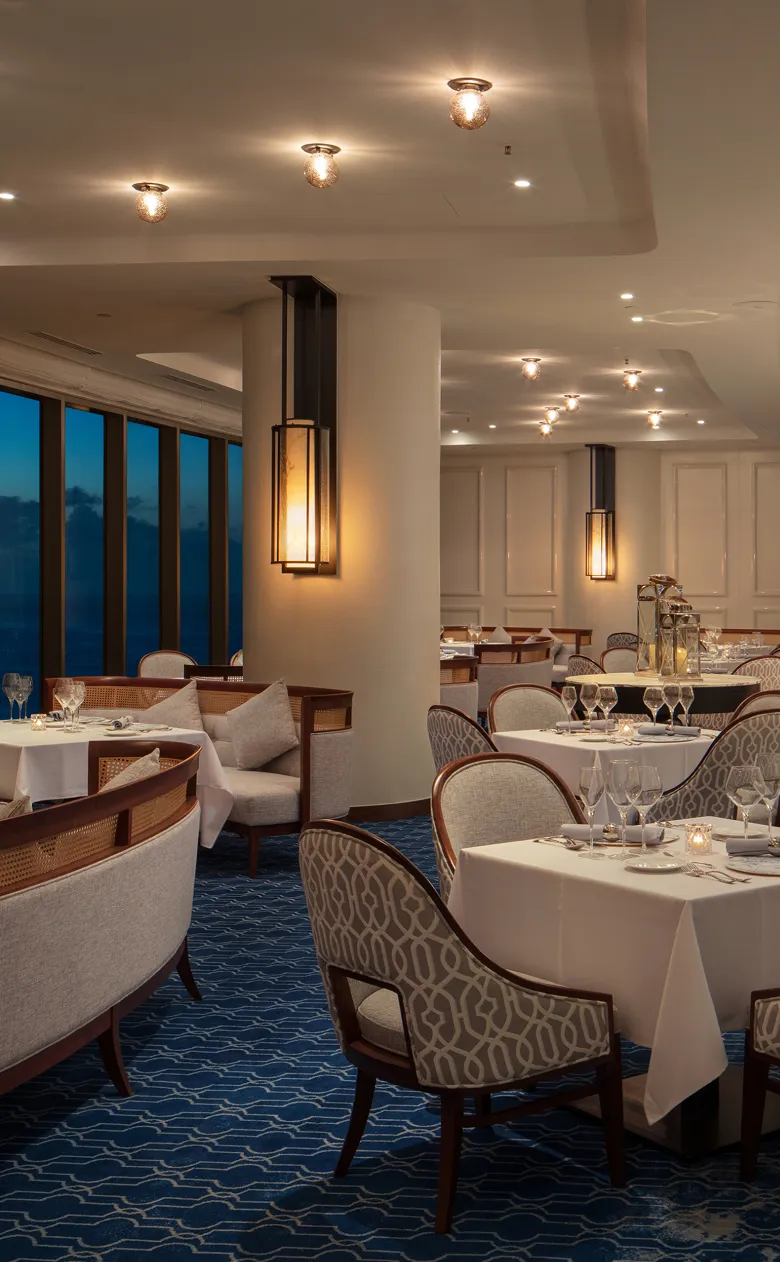 A top-floor luxury restaurant where gourmet seafood and grilled dishes meet stunning vistas.