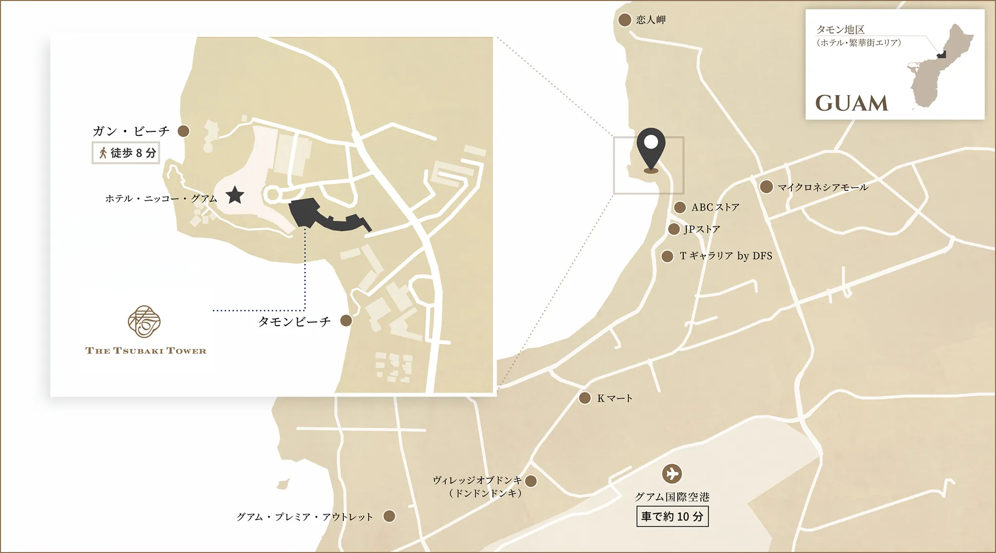 タモン湾を望む静かな高台に佇む、ザ ツバキ タワー。